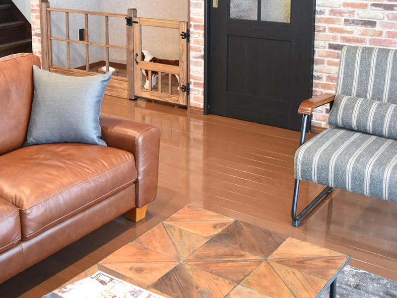 ワンちゃんの足腰にやさしい、滑りにくい床のコーティングを施しています。キズの防止や、汚れが染み付くことを防ぐので、お手入れもカンタン!